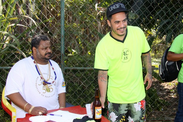 Thiago Martins e Marcelo D2 foram na festa do cantor, que aconteceu na tarde desta segunda-feira, 16, no Recreio, na Zona Oeste do Rio.